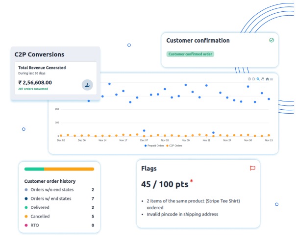 All placed orders are cross-referenced with other ecommerce sites to check the users for past RTO history, order cancellations and other fraudulent behaviour